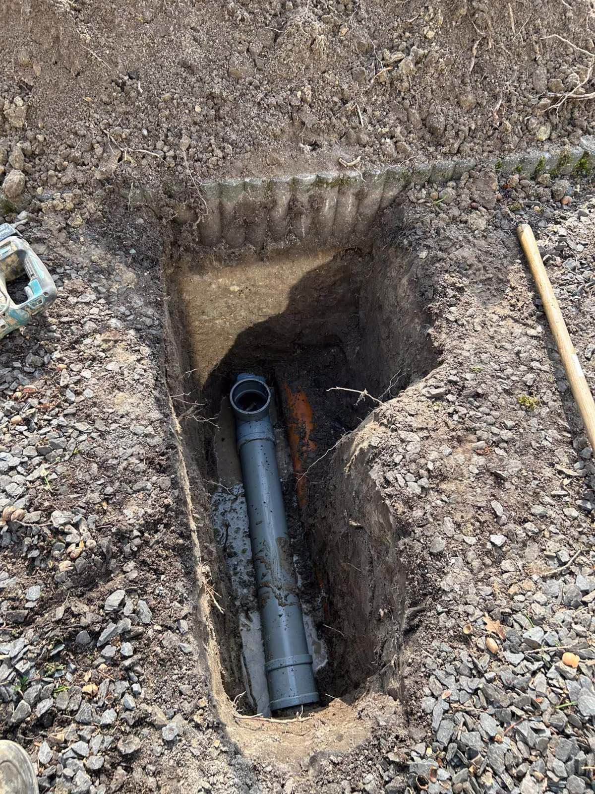 Nadat de oorzaak helder was, is er snel actie ondernomen. In overleg met de bewoners werd besloten om het verzakte en beschadigde deel van de riolering in de voortuin volledig te vervangen. Binnen een week werd de voortuin opengegraven, het oude riool verwijderd en het tracé opnieuw voorbereid. De nieuwe rioolbuizen zijn op de juiste diepte aangelegd, netjes op afschot en met een stabiele, dragende ondergrond van schoon zand. Hierdoor wordt de buis overal goed ondersteund en kan toekomstige verzakking zoveel mogelijk worden voorkomen.